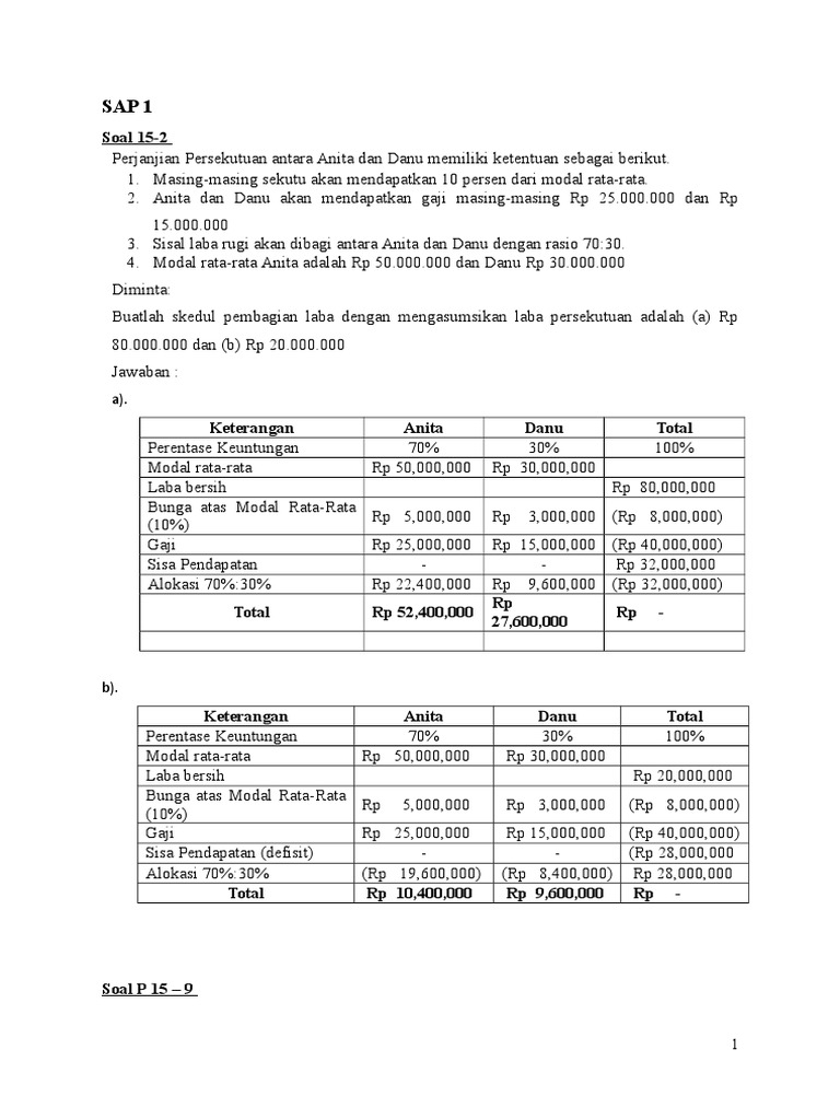 Contoh Soal dan Jawaban Pembagian Laba Rugi Persekutuan akan memberikan anda pandangan bahwa dalam usaha yang didirikan oleh lebih dari seseorang mengharuskan membagi setiap keuntungan yang diterima oleh perusahaan. Contoh Soal Akuntansi Pembentukan Persekutuan Firma Contoh soal akuntansi pembentukan persekutuan firma mengharuskan ada dua pihak yang harus menyetorkan dan membuat firma dengan menggunakan buku baru Pada kasus ini tuan sani menyetorkan laporan posisi keuangan sebesar sebagai berikut. Contoh Soal Pembubaran Persekutuan - Akuntansi Keuangan 31 Mei 2020 Contoh Soal Pembubaran Persekutuan.