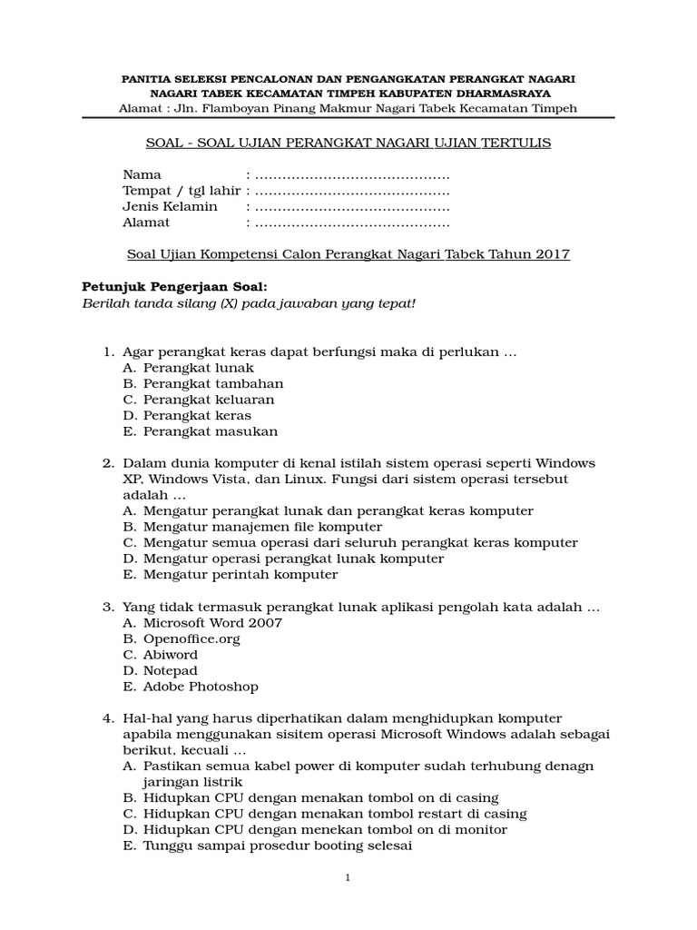 Contoh Soal Ujian Perangkat Desa Ebook Download Kami