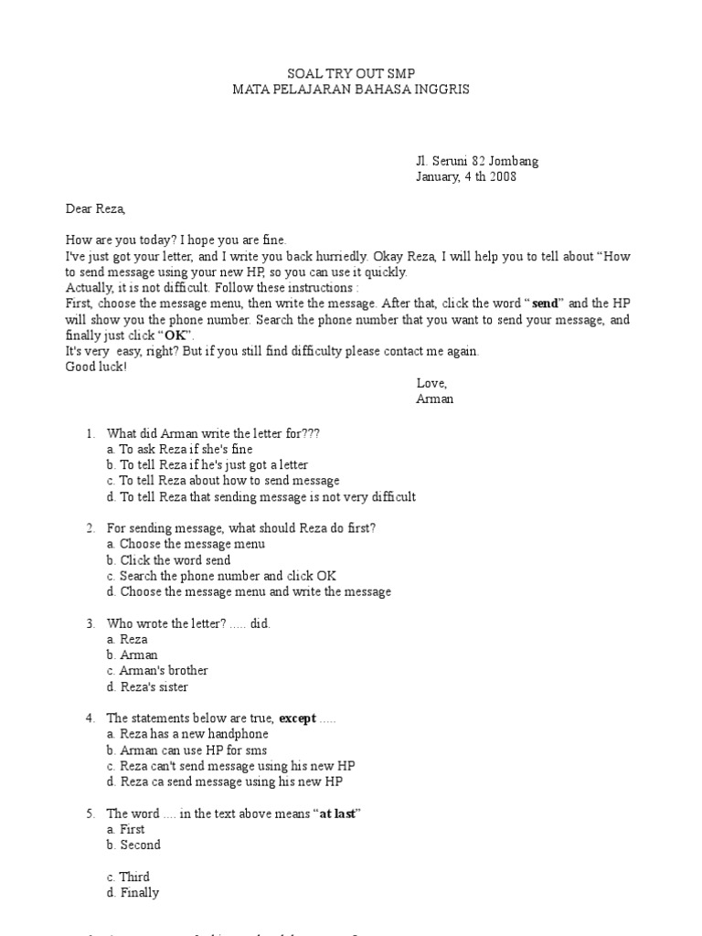 Latihan Soal Try Out Bahasa Inggris Smp Online