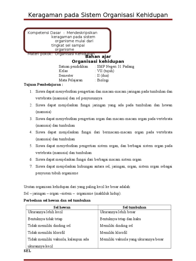 Dapat membedakan antara sel tumbuhan dan hewan 4. Memahami pengertian sel 2. Pengertian Organisasi Istilah organisasi berasal dari bahasa Yunani yaitu Organon atau dalam bahasa Latin Organum yang artinya alat bagian anggota atau badan.