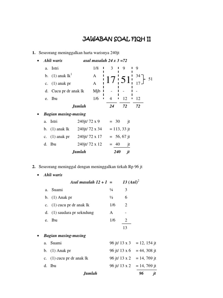 29 Contoh Soal Waris Islam Kumpulan Contoh Soal
