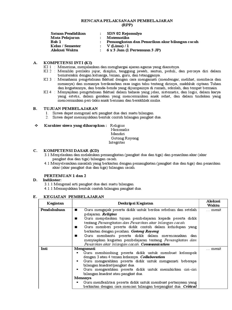 Contoh Rpp Matematika Sd Kelas 5