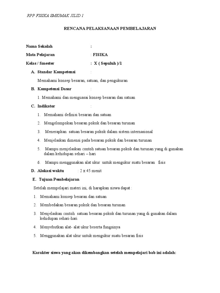 Rpp Fisika Kelas X Semester 1 Dan 2