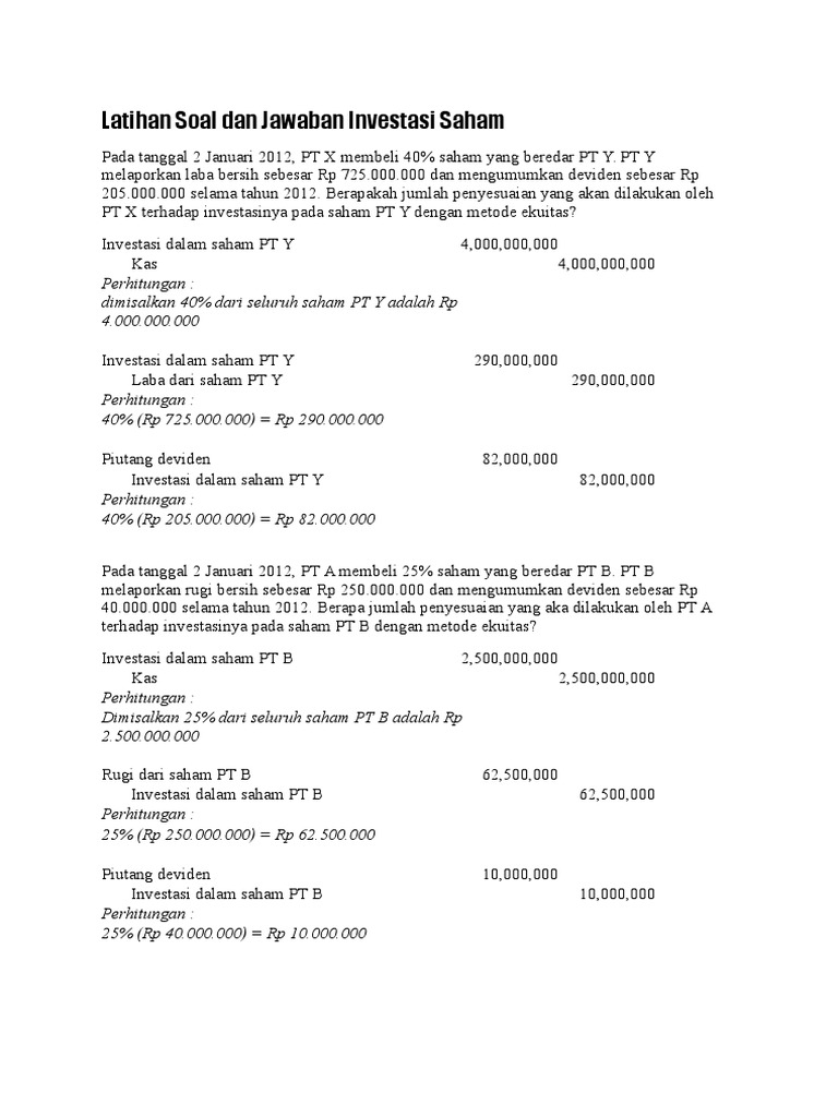 Contoh Soal Dan Jawaban Dividen Saham Soal Dan Jawaban