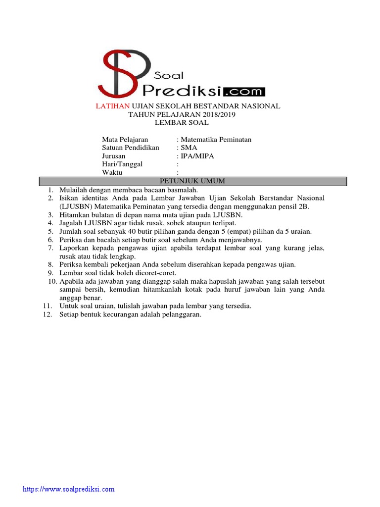 Download Soal Un Matematika Ipa Sma Tahun 2019 Sudut Baca
