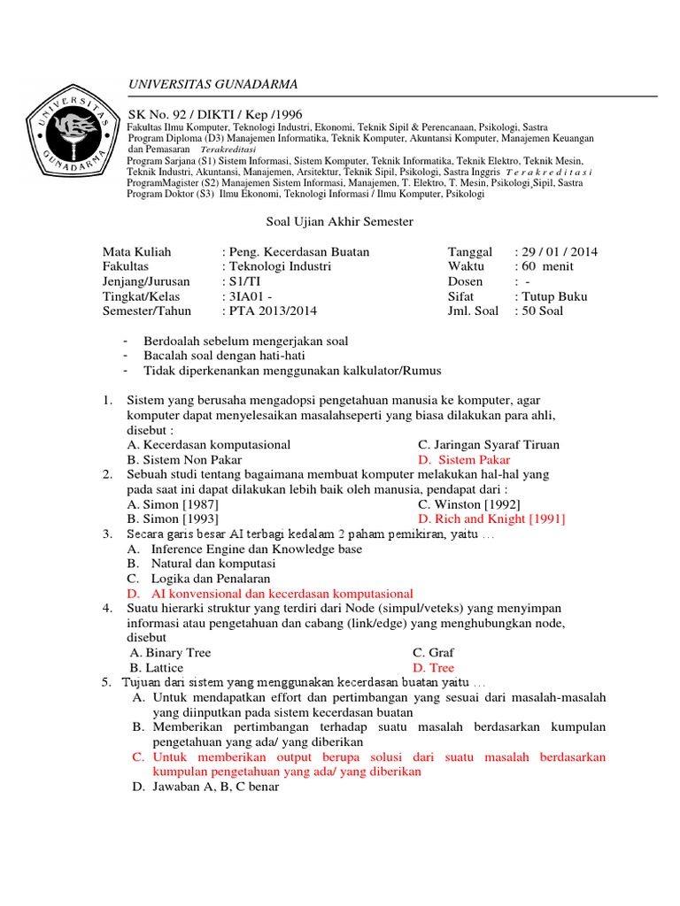 Contoh Latihan Soal Soal Uas Matematika Dasar 1 Gunadarma